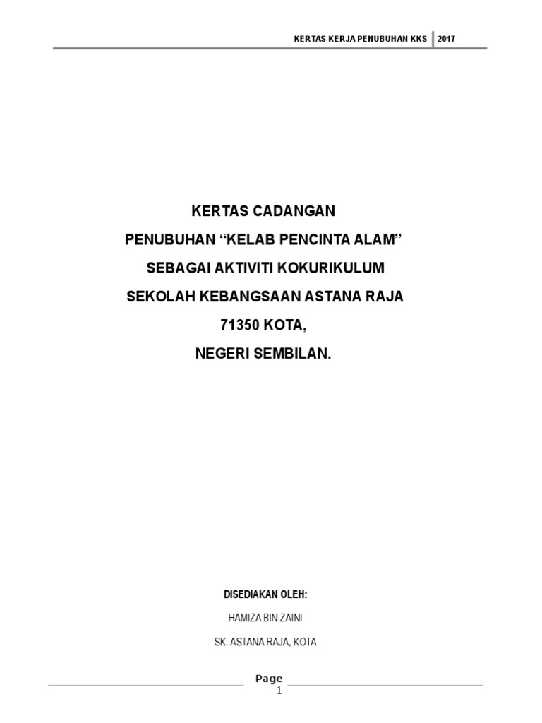 Kertas Cadangan Kelab Pencinta Alam Ipsah Pdf